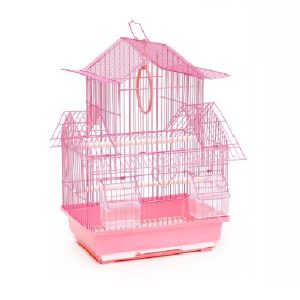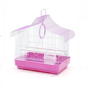 A small sized round cage, with a rounded top and narrow gaps between the wires, best suited for tiny birds.